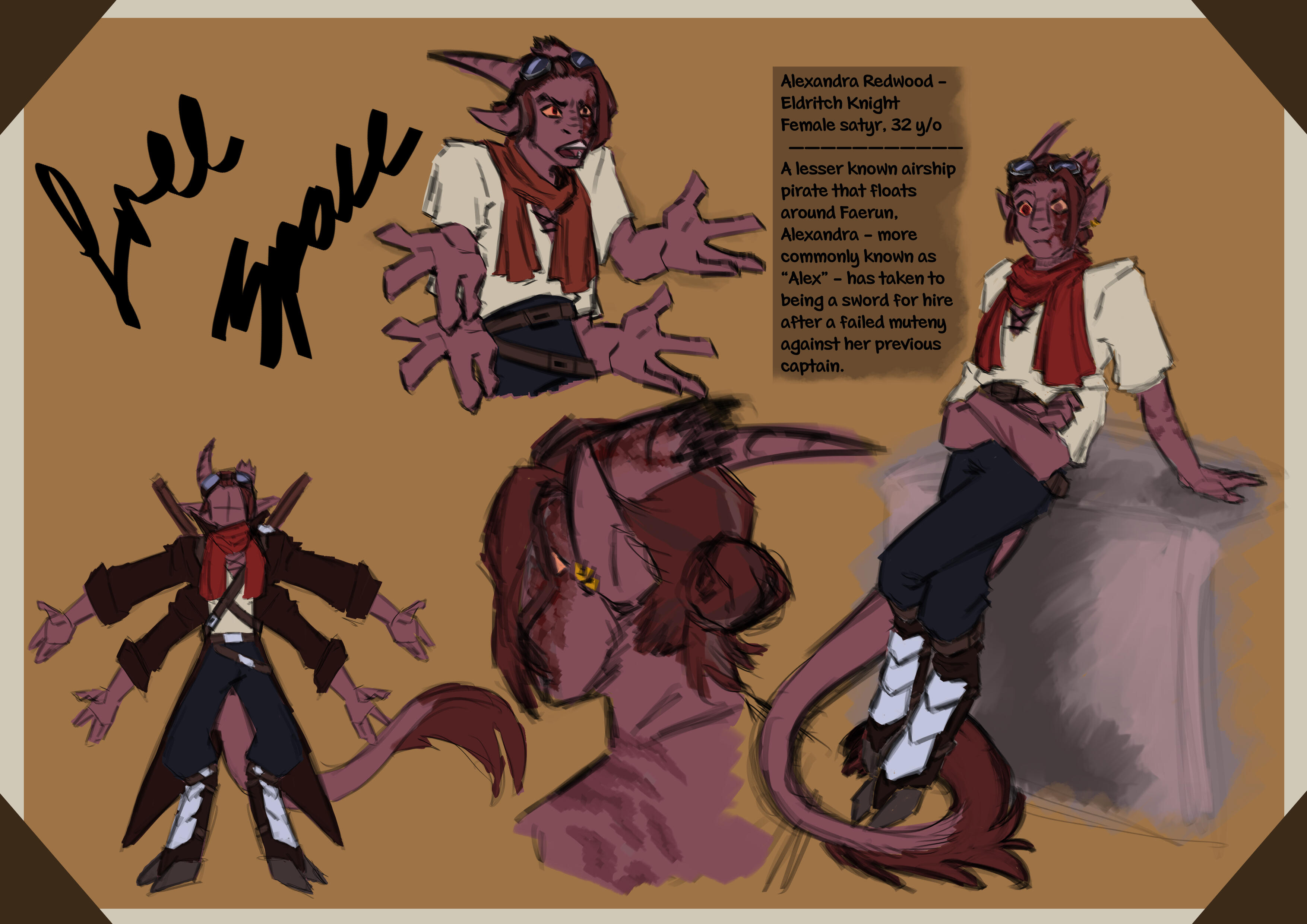 The character that I was going to play in a local DnD campaign was a satyr fighter that had previously been an airship pirate. So what I had to think about was what would be different about them from other satyrs within the world that the campaign was set in.
